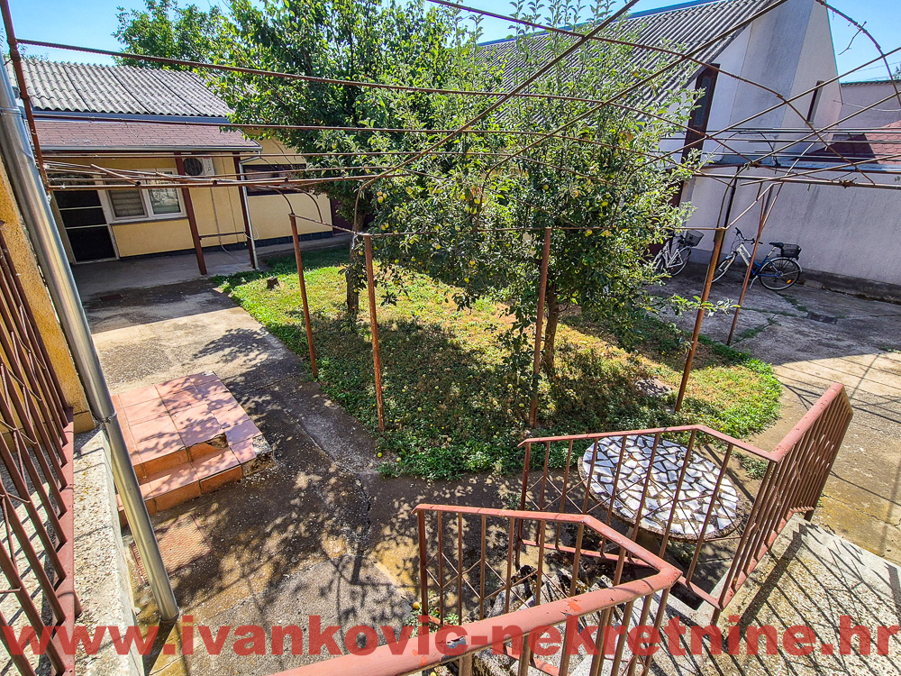 Nekretnina se prostire na zemljištu ukupne površine 830 m², a sastoji se od kuće visoke prizemnice, garaže, stambene dvorišne zgrade, radionice, ostava i ograđenog dvorišta s zelenom površinom.