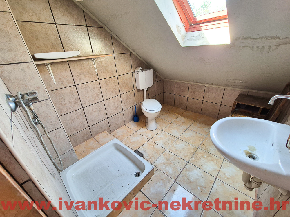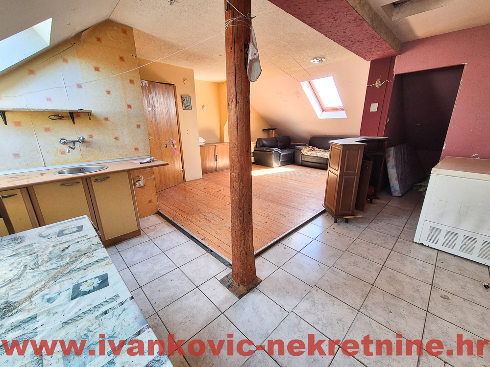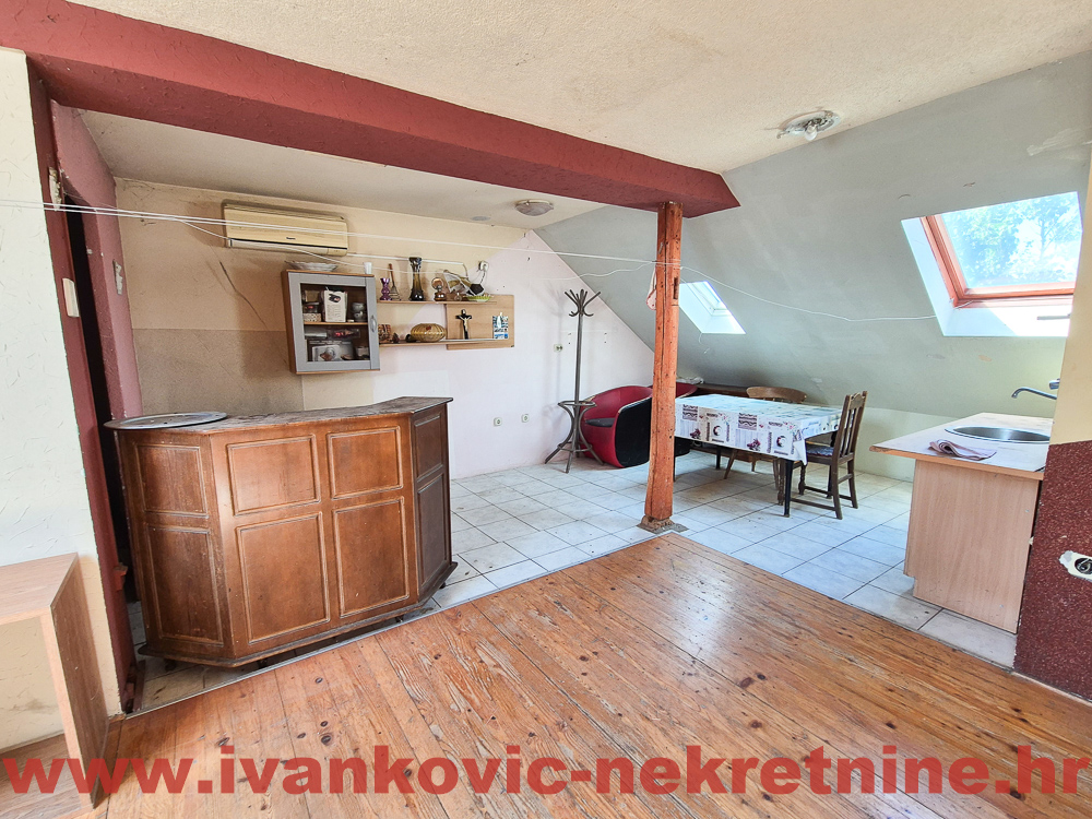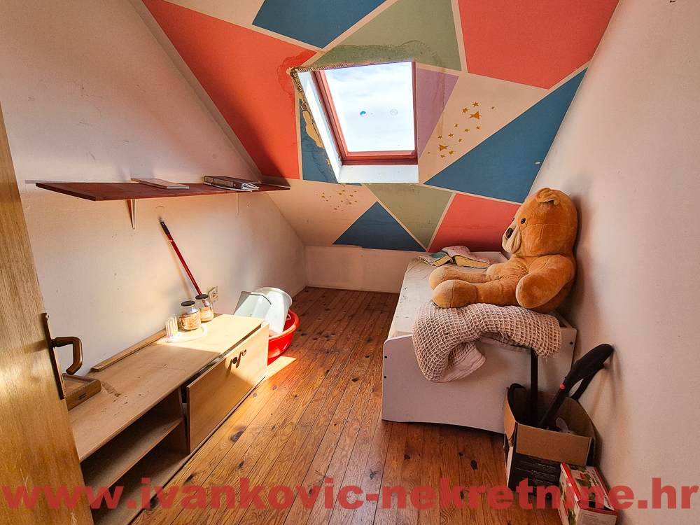 U potkrovlju se nalazi manji hodnik, kupaonica, manja soba te kuhinja s blagovaonicom i dnevnim boravkom.
